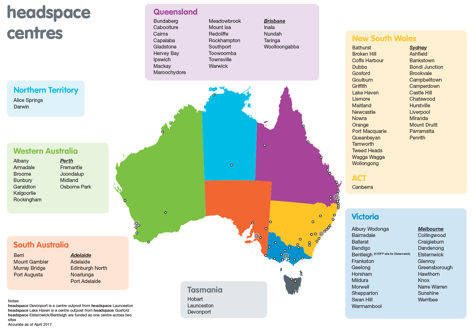 Map of headspace centres nationally. (image from headspace.org.au)