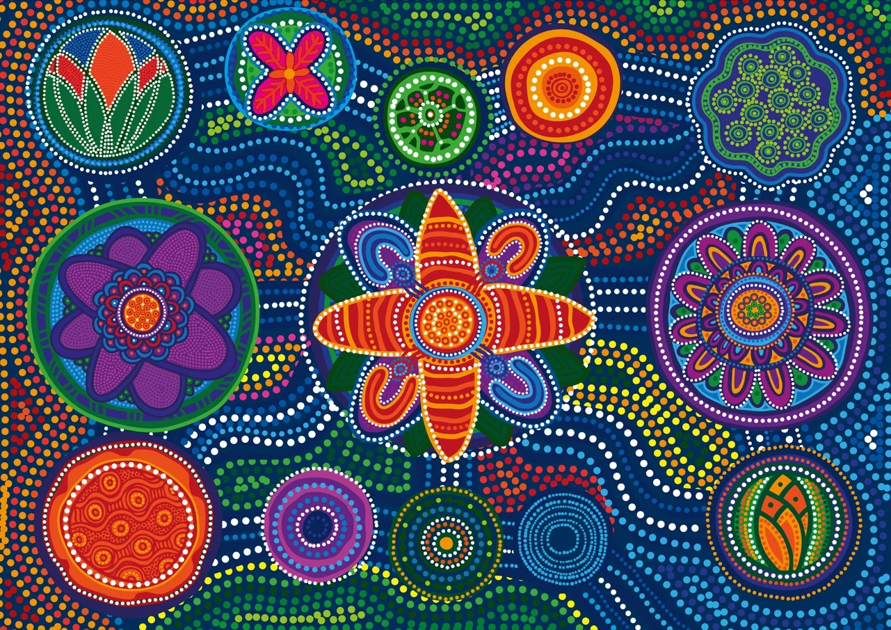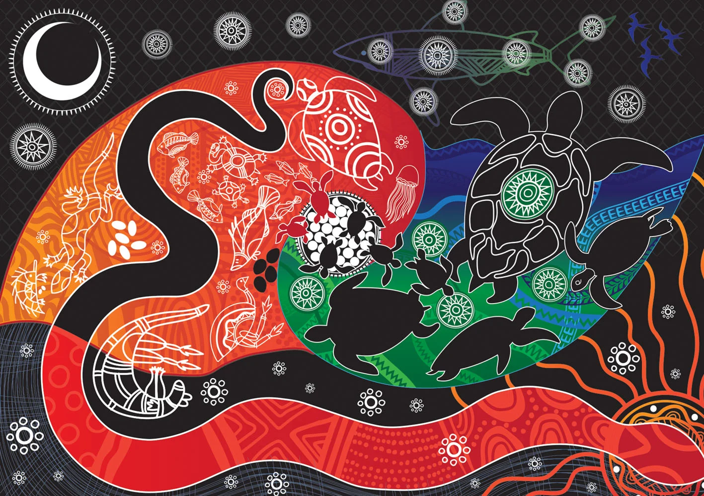 The Creation Spirit moves across the vast expanse, forming and shaping the landscape. Songs are sung and ceremonies are made – this is the beginning of time.