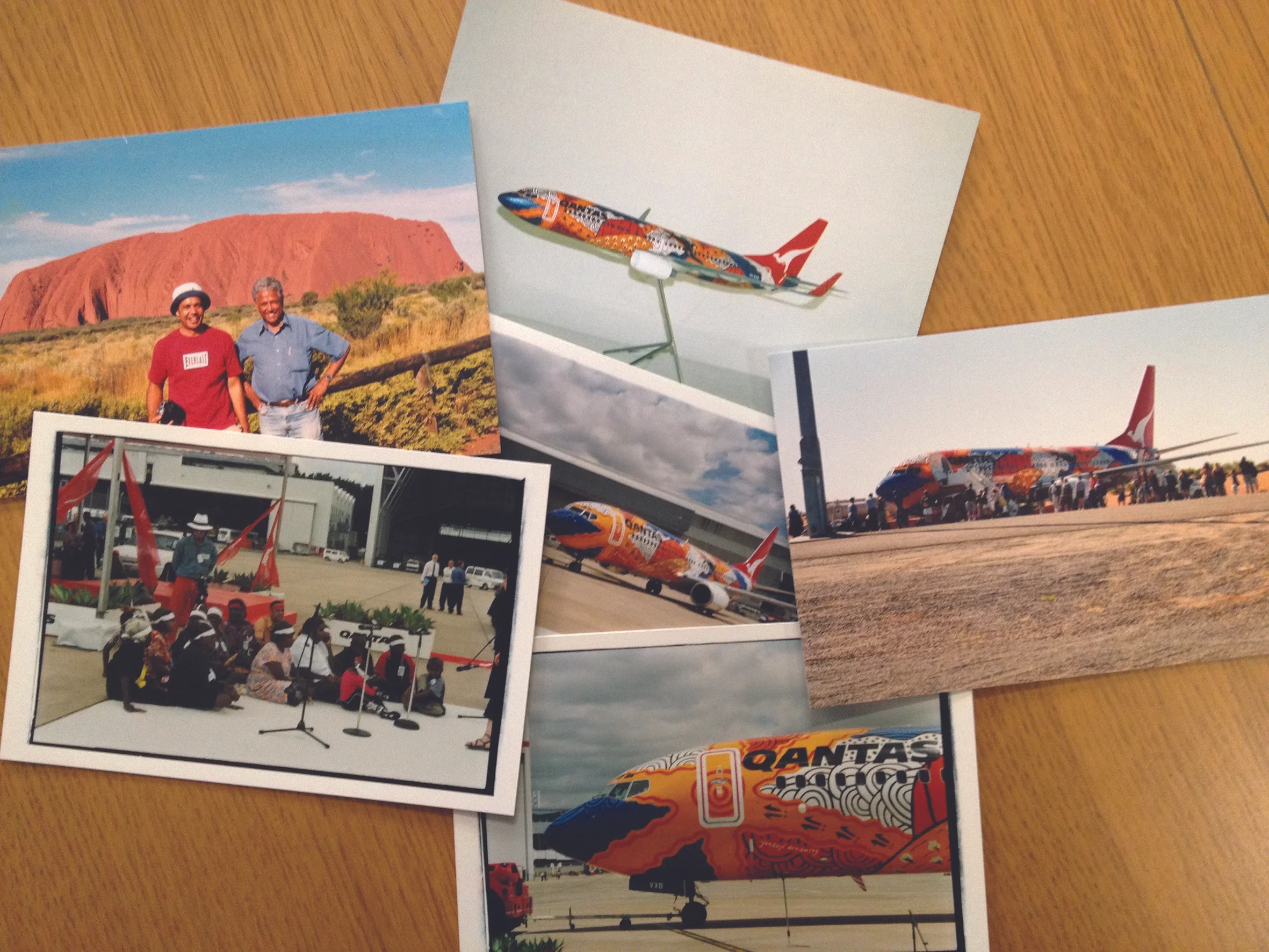 ‘Yananyi Dreaming’, a Boeing 737-800 aircraft, was designed by Balarinji using individual motifs painted by Rene Kulitja whose vibrant colours are inspired by the dramatic landscape surrounding Uluru. ‘Yananyi’ means going or travelling.